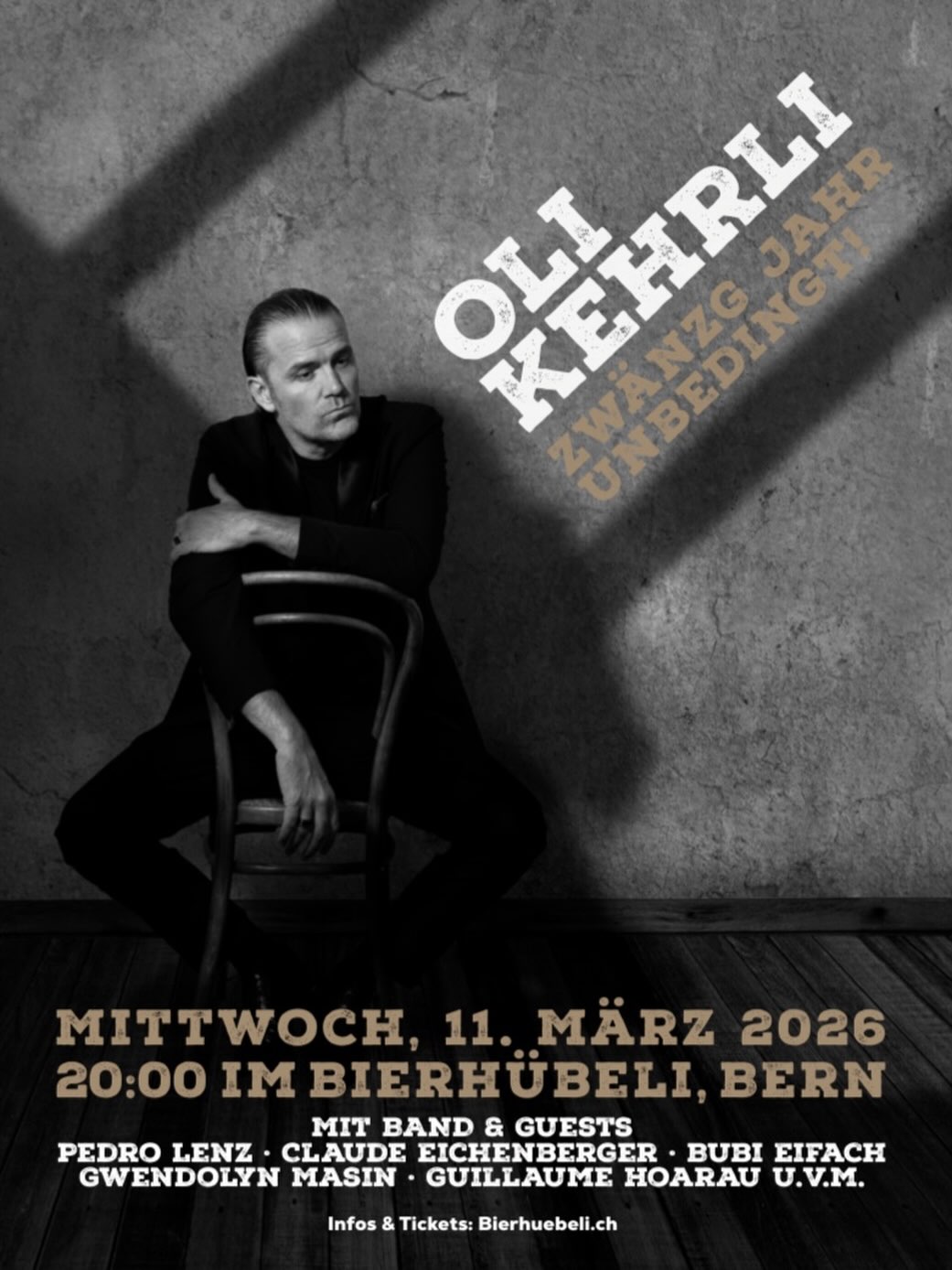 Seit 20 Jahren lebt Kehrli Tradition neu, mit eigenem Stil und unverwechselbarem Sound. Sichere dir dein Ticket für das Eröffnungskonzert der Jubiläumstour im Bierhübeli Bern am 11. März 2026.