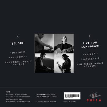 Band: Oli Kehrli – Gitarre/Gesang, Lukas Iselin – Piano/Akkordeon, Marco Mazotti – Bass, Muso Stamm – Drum/Percussion * Nicolas Perrin – Gitarre